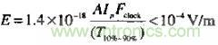 準(zhǔn)則6 對于采用的驅(qū)動(dòng)門電路,要使其上升沿時(shí)間要盡可能長。式6表明,輻射與上升時(shí)間的倒數(shù)成正比。