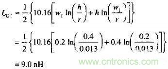 圖9.8顯示了一個(gè)典型的16位總線。我們來分步計(jì)算路徑G1和G2的電感,以及路徑G1的輻射和路徑G2的輻射。