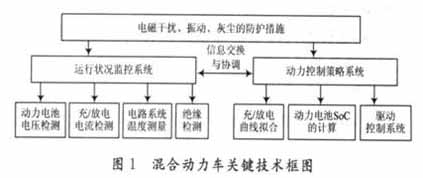 實(shí)現(xiàn)混合動(dòng)力車(chē)共有三個(gè)關(guān)鍵因素:能夠?qū)ζ?chē)運(yùn)行狀態(tài)詳細(xì)監(jiān)控的系統(tǒng);分析監(jiān)控系統(tǒng)所獲取的信息,并發(fā)出相應(yīng)的控制命令;相比一般電子系統(tǒng),混合動(dòng)力車(chē)電子控制系統(tǒng)工作在車(chē)內(nèi)非常惡劣的環(huán)境,電磁干擾、振動(dòng)、灰塵等都會(huì)造成技術(shù)上的瓶頸,如圖1所示。