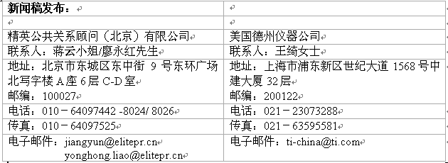 德州儀器 (TI) 半導體創(chuàng)新技術為未來世界開啟無限可能。攜手全球 80,000 家客戶,TI致力打造更智能、更安全、更環(huán)保、更健康以及更精彩的生活。TI把構建美好未來的承諾付諸于日常言行的點滴,從高度負責地生產(chǎn)半導體產(chǎn)品,到關愛員工、回饋社會。這一切僅是 TI 實踐承諾的開始。TI 在納斯達克交易所上市交易,交易代碼為 TXN。TI 半導體產(chǎn)品信息中心免費熱線電話:800-820-8682。