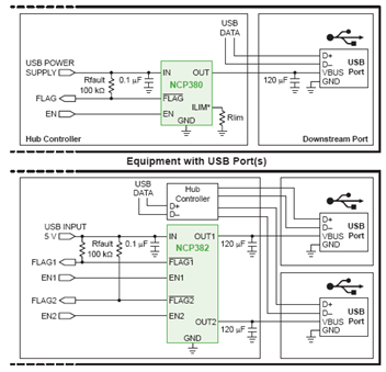 USB負(fù)載開關(guān)提供用于USB主機的過流保護(hù)(OCP)。安森美半導(dǎo)體的相關(guān)產(chǎn)品有NCP380、NCP382單、雙通道負(fù)載開關(guān)。這些器件可防止采用USB的設(shè)備端口因短路或過載事件而損壞,其短路檢測時間僅為1微秒。這些器件具有精確的電流限制閾值、固定或可調(diào)電流限制(500 mA至2.1 A),支持在電流平板電腦充電,獲得了UL和CB認(rèn)證。