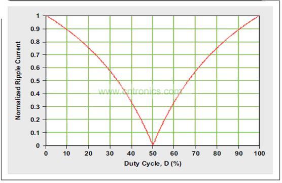 圖3 標準化電容器紋波電流為占空比的函數(shù)