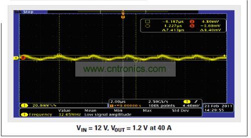 由于每個輸出電感中存儲的能量降低,負載瞬態(tài)性能隨之提高。電流抵消帶來的紋波電壓降低,幫助實現(xiàn)了最小輸出電壓過沖和下沖,因為在環(huán)路響應以前許多周期都已結(jié)束。紋波電流越低,干擾越小。