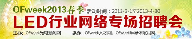 導(dǎo)讀:新年招聘旺季序幕已經(jīng)拉開(kāi),您是否正在茫茫人海大潮中苦尋理想職位?或意欲辭職蠢蠢欲動(dòng)?新年伊始,OFweek為你推薦LED行業(yè)的好工作!3月1號(hào)~4月30日,由中國(guó)高科技行業(yè)綜合門戶網(wǎng)站-OFweek主辦,OFweek人才網(wǎng)、OFweek半導(dǎo)體照明網(wǎng)承辦的“OFweek2013春季LED行業(yè)網(wǎng)絡(luò)專場(chǎng)招聘會(huì)”日前啟動(dòng)。
