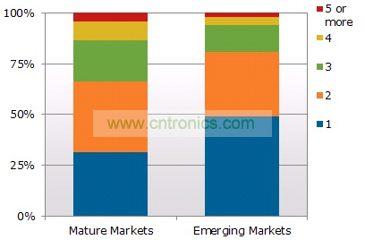 該報(bào)告還發(fā)現(xiàn),在成熟市場(chǎng)家庭平均擁有2.4臺(tái)電視,而在新興市場(chǎng)平均每戶為1.8臺(tái)。成熟市場(chǎng)中,超過(guò)三分之二的家庭有一臺(tái)以上電視,但在新興市場(chǎng)近一半的家庭只有一臺(tái)電視。鑒于平板電視持續(xù)推出新機(jī)種、價(jià)格益加實(shí)惠、以及消費(fèi)者對(duì)高品質(zhì)、大屏幕和高清晰度電視的消費(fèi)欲望,和成熟市場(chǎng)的消費(fèi)者一樣,越來(lái)越多的新興市場(chǎng)消費(fèi)者購(gòu)買(mǎi)平板電視(主要是液晶電視)來(lái)汰換他們現(xiàn)有的舊款式電視。