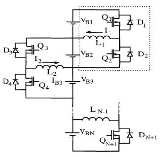 開(kāi)關(guān)電感法可以實(shí)現(xiàn)相鄰電池單體間能量的同時(shí)傳遞,可以減少均衡時(shí)間,對(duì)于N 個(gè)蓄電池單體,需要2N-2 個(gè)MOSFET 和N-1 個(gè)電感。