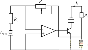 電路框圖和特性曲線分別如圖2(a)、(b)所示,輸出電流IO=RFUREF/(RSR1)