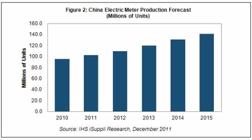 迄今為止,國(guó)家電網(wǎng)公司在2011年進(jìn)行了五輪智能電表招標(biāo),第五輪招標(biāo)在11月底進(jìn)行,正好是在撰寫本文的時(shí)候。通過這五輪招標(biāo),國(guó)家電網(wǎng)公司可能總計(jì)要采購(gòu)大約6830萬個(gè)電表,其中5970萬個(gè)是智能電表。IHS公司認(rèn)為,五輪招標(biāo)金額將超過18億美元,國(guó)家電網(wǎng)公司表示將從明年開始大規(guī)模建設(shè)。