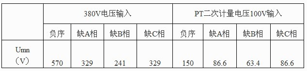 從表中可發(fā)現(xiàn),380V電壓回路發(fā)生反相序接線時,Umn輸出電壓量最大;PT二次計量電壓回路發(fā)生B相缺相時,Umn輸出電壓最小。