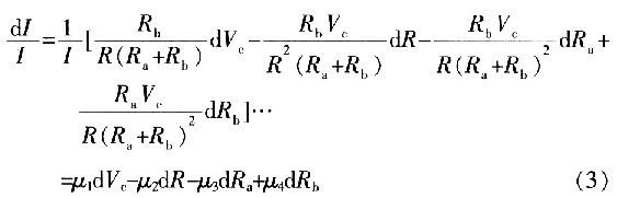 但在實際情況下電阻的溫度系數(shù)和基準(zhǔn)電壓的溫度系數(shù)將影響輸出電流的穩(wěn)定性。對式(2)進(jìn)行全微分并化簡可得電流穩(wěn)定度的表達(dá)式: