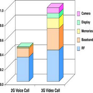 早期的行動電話不是體積笨重龐大,就是必須受到汽車電池的束縛,但經(jīng)過長時間的發(fā)展,今天的行動電話已變得非常輕巧,除了電話功能,它們還會做許多事。新型3.xG 智能型手機把傳統(tǒng)的2G 行動電話和多種其它功能結(jié)合在一起,包括PDA、數(shù)字相機、音樂播放機(MP3)以及全球定位系統(tǒng)(GPS)。如此多元的功能需要許多零件,其中絕大多數(shù)的電源電壓并不相同,電流需求則不斷增加,使得它們需要更多電力。(圖一)是從2G 語音電話升級到3G 視訊電話后,功率需求增加的估計值。