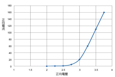 圖2 LED在不同正向電壓條件下的典型正向電流