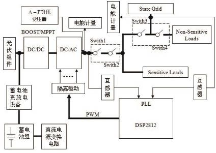 微網(wǎng)逆變器系統(tǒng)將可再生能源(如太陽(yáng)能,風(fēng)能,水能,地?zé)崮?,生物質(zhì)能等)轉(zhuǎn)變?yōu)榕c電網(wǎng)同頻、同相的交流電,優(yōu)先輸送給當(dāng)?shù)刎?fù)荷供電,剩余的電能饋入電網(wǎng)。微網(wǎng)逆變器系統(tǒng)主要包括:光伏組件、蓄電池組、蓄電池充放電設(shè)備、DC/DC變換器、微網(wǎng)逆變器、靜態(tài)開(kāi)關(guān)等。