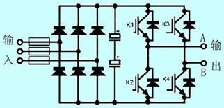 以目前最常見的單元級聯(lián)式高壓變頻器為例,對其中一個功率單元為例進行熱設計。功率器件采用igbt,其電路如圖1所示。