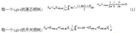(1)igbt的功率損耗一般包括通態(tài)損耗、斷態(tài)損耗、開通損耗、關斷損耗和驅(qū)動損耗,在估算時主要考慮通態(tài)損耗、開通損耗與關斷損耗;