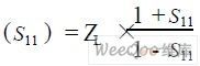 在載波頻率為13. 56 MHz時,通過在TX1 和TX2 兩點測量天線線路的反射系數(shù)(即參數(shù)S11 )來手動調(diào)諧,直到天線電路的輸入阻抗達到目標(biāo),計算方程如下:
